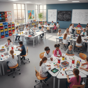 ![Classroom with both STEM tools and art supplies available for students]